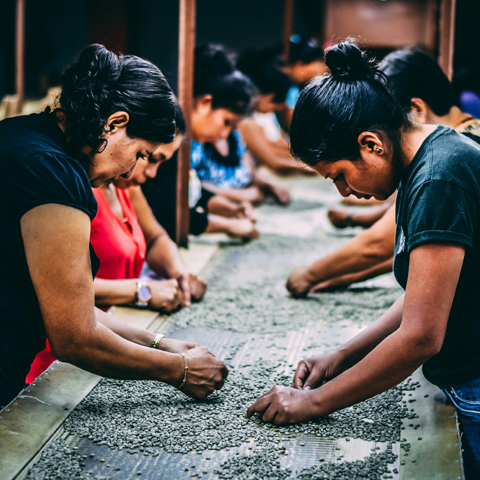 De ongebrande groene bonen worden bij aankomst grondig geïnspecteerd. We controleren op kwaliteit, grootte en kleur om ervoor te zorgen dat alleen de beste bonen worden gebruikt voor onze blends.