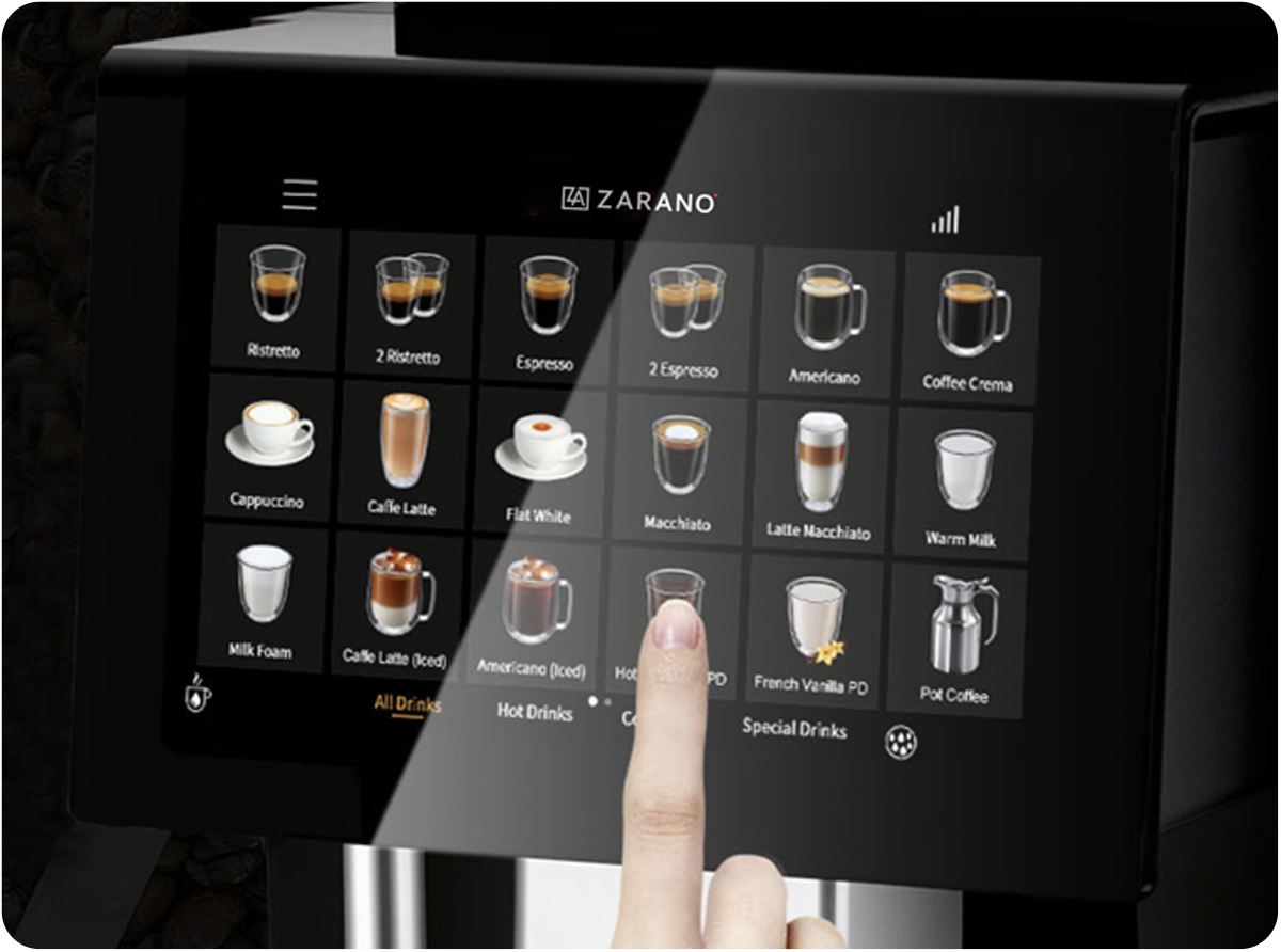 De iE30 is uitgerust met een groot, gebruiksvriendelijk 12” touchscreen, waarmee gebruikers eenvoudig hun favoriete koffievariaties kunnen selecteren. Het heldere en intuïtieve display maakt de bediening soepel en snel.